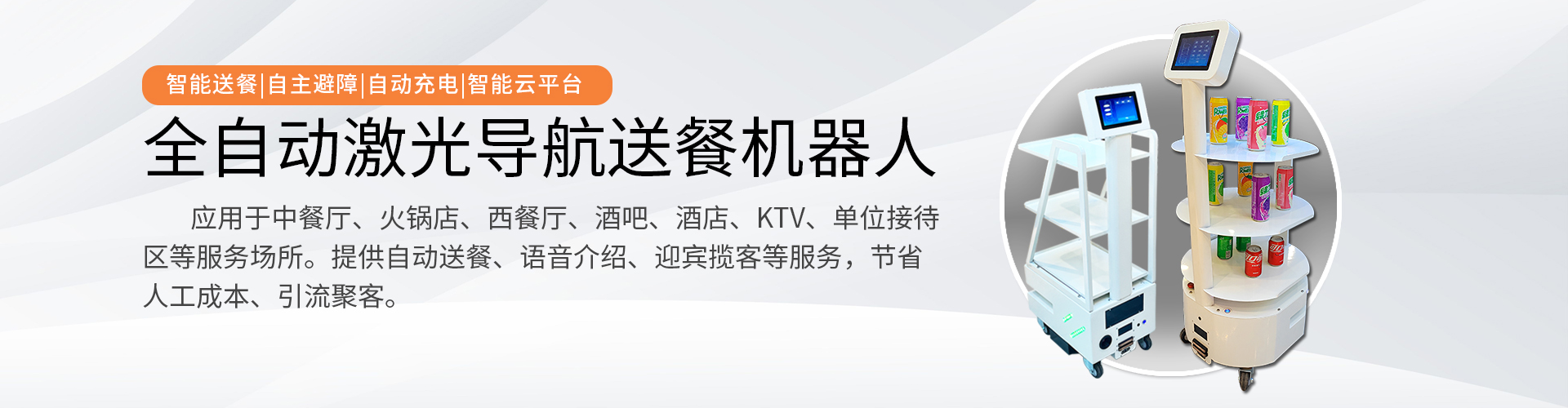 小闖送餐機(jī)器人激光導(dǎo)航智能無軌送餐機(jī)器人